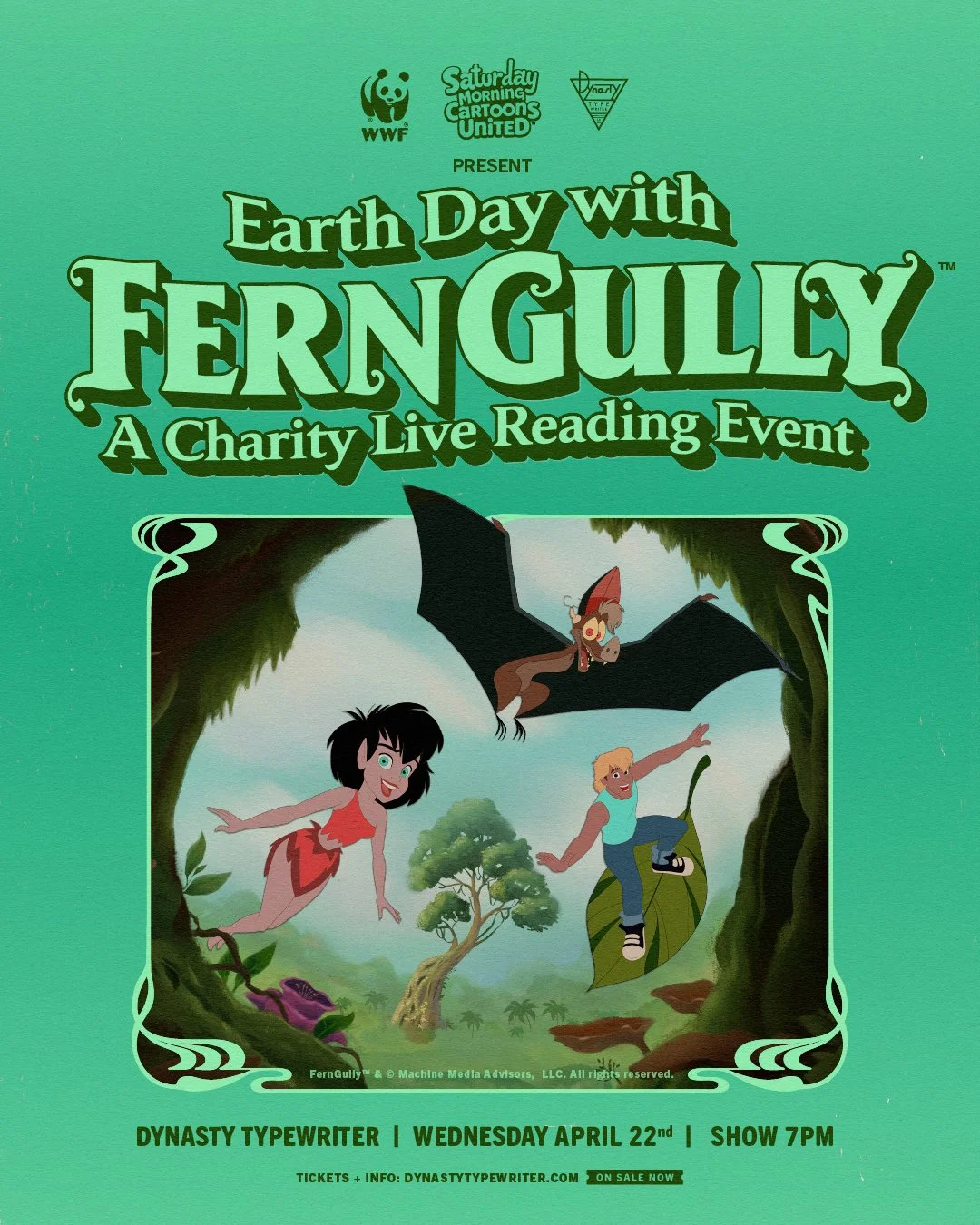 Dynasty Typewriter presents a first-of-its-kind live reading of the script for the film FernGully: The Last Rainforest. Supported by SFO Entertainment and World Wildlife Fund (WWF) on Earth Day, April 22, 2026. The reading will feature an exciting star-studded cast (to be announced) along with new and never-before-seen surprises. Arrive early—doors open at 6 PM, show starts at 7 PM!